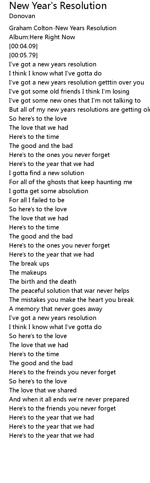 | [00:01.40] | Graham Colton-New Years Resolution |