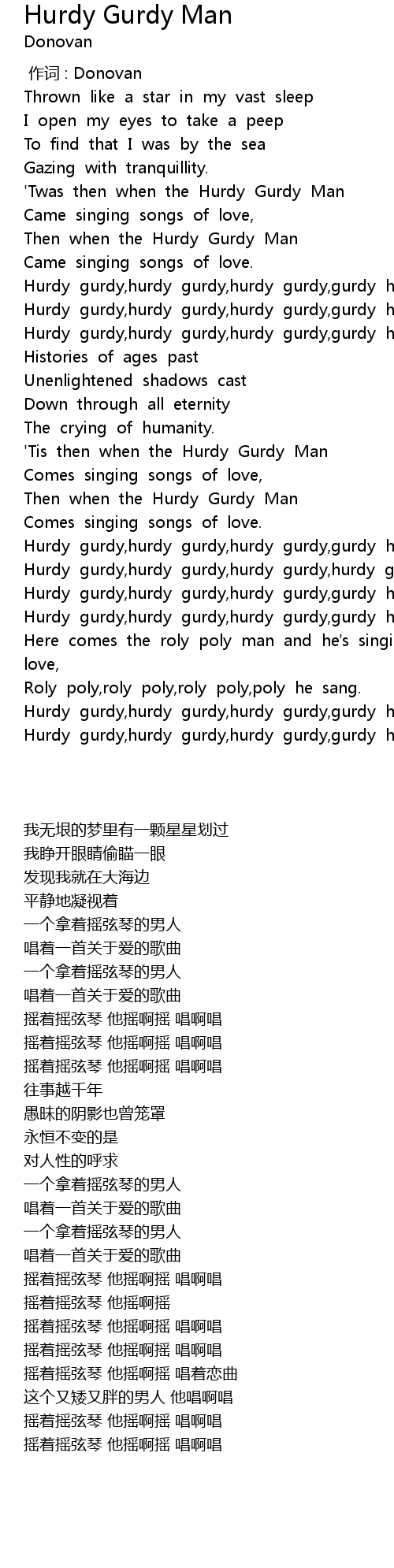 | [00:25.313] | 'Twas then when the Hurdy Gurdy Man |