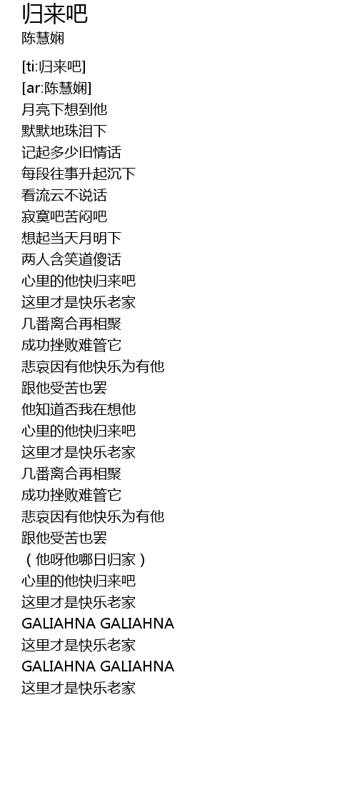 | [02:41.687] | xīn lǐ de tā kuài guī lái ba |