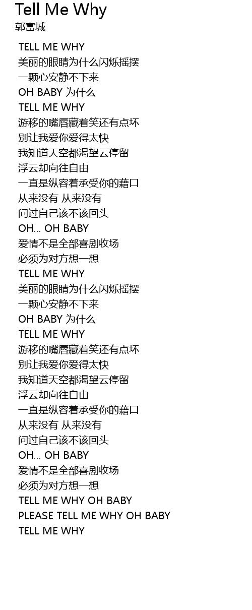 | [03:51.756] | PLEASE TELL ME WHY OH BABY |