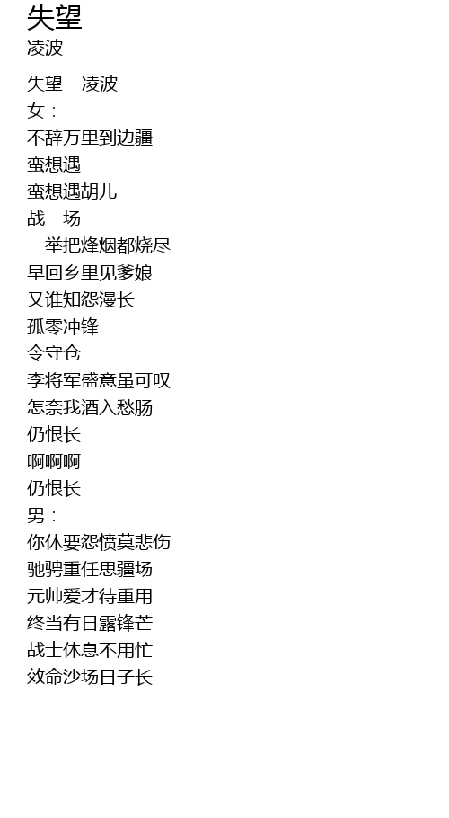 | [00:00.89] | 失望 - 凌波 |