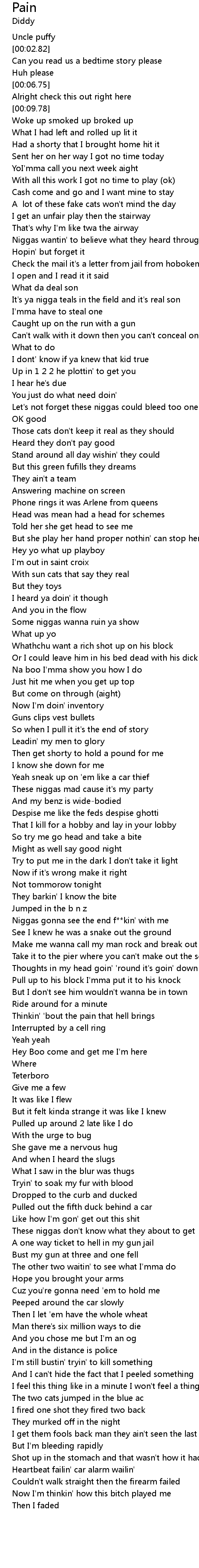 | [00:58.69] | Let's not forget these niggas could bleed too one |