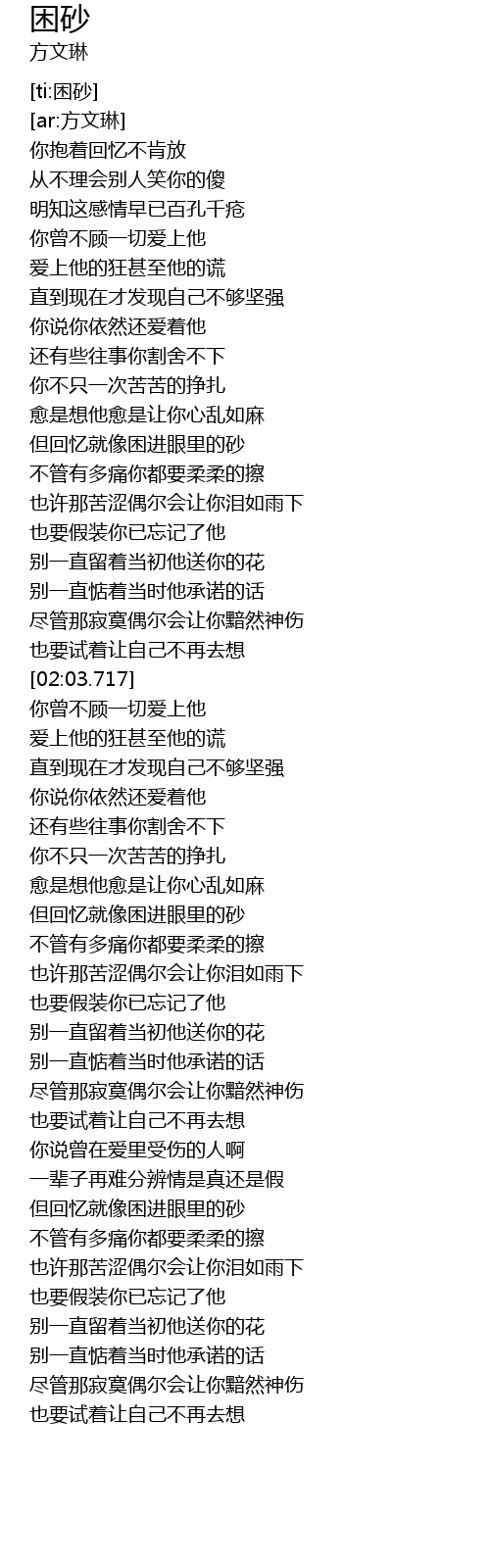 | [02:58.849] | 但回忆就像困进眼里的砂 |