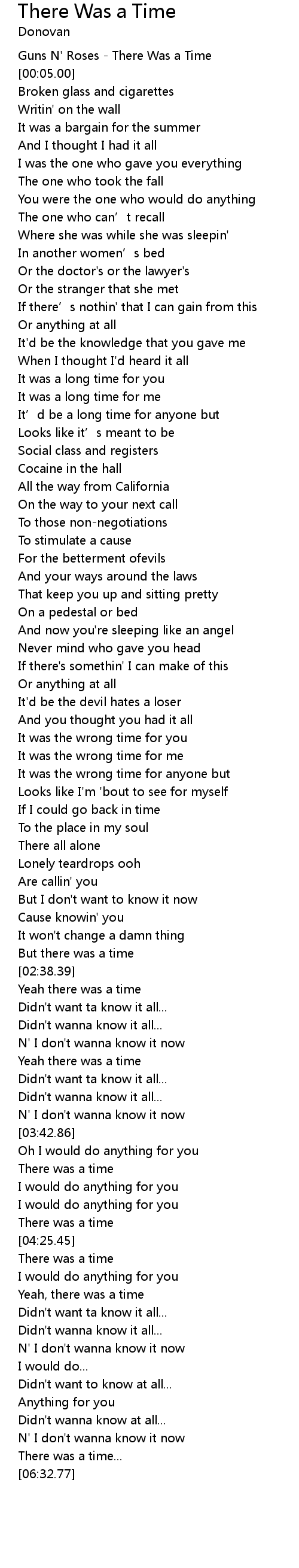 | [00:02.00] | Guns N' Roses - There Was a Time |