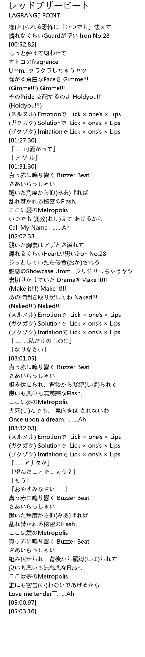 | [01:32.17] | 真っ赤に鳴り響く Buzzer Beat |