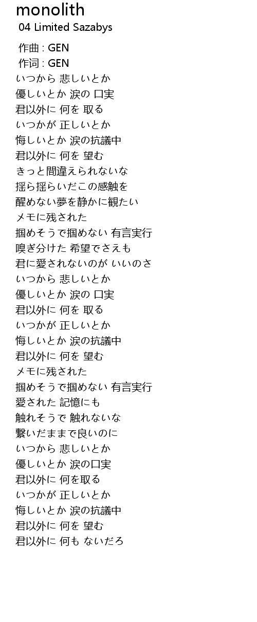 | 歌曲 | monolith |