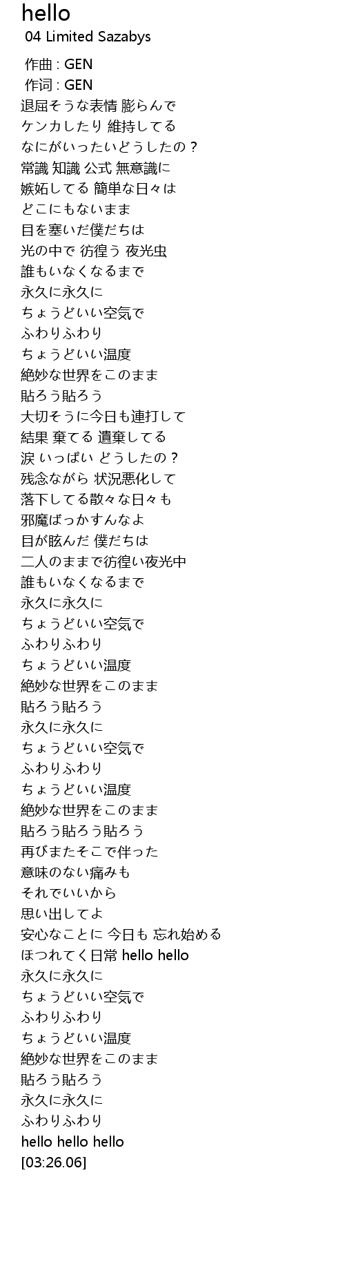 | [02:49.48] | ほつれてく日常 hello hello |