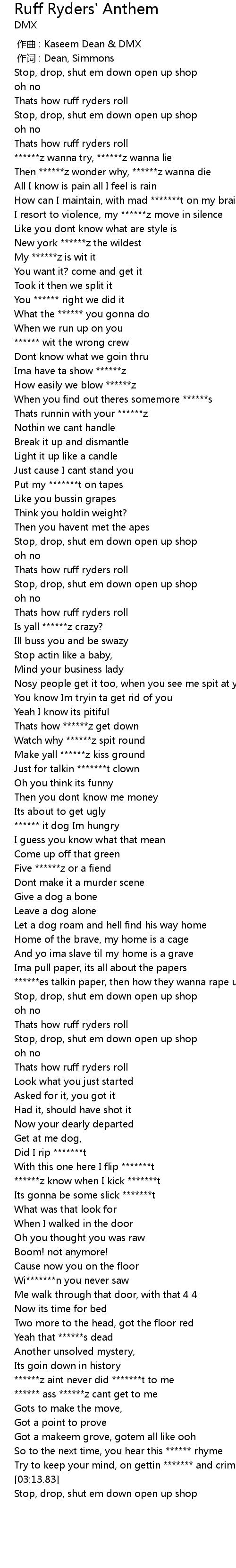| [00:32.55] | Thats how ruff ryders roll |