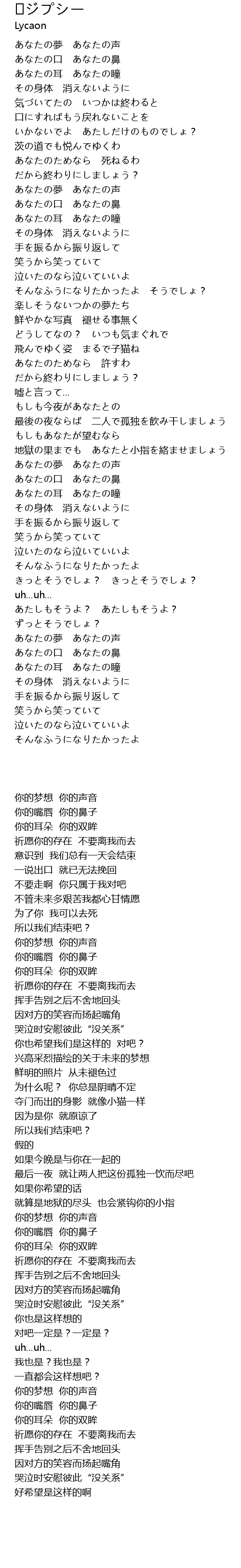 | [00:14.31] | あなたの耳 あなたの瞳 |
