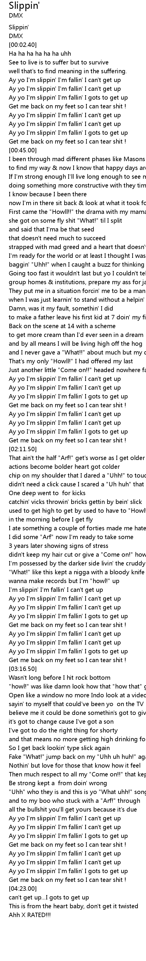 Ay yo I'm slippin' I'm fallin' I gots to get up |
