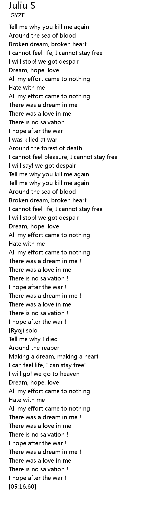 | [00:51.43] | Tell me why you kill me again |