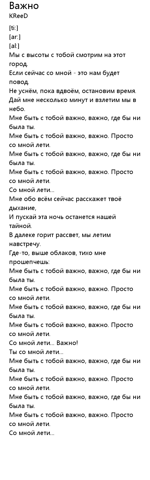 [02:15.14] Мне быть с тобой важно, важно. Просто со мной лети.