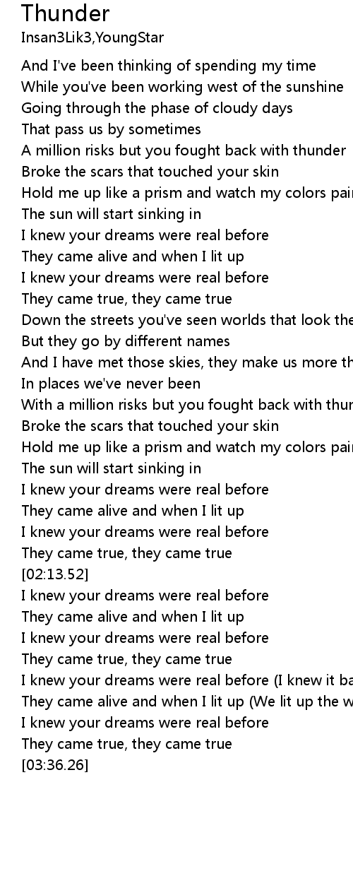| [01:39.93] | With a million risks but you fought back with thunder |
