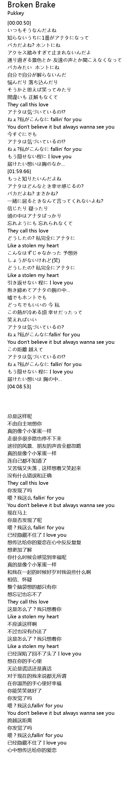 | 歌曲 | Broken Brake |