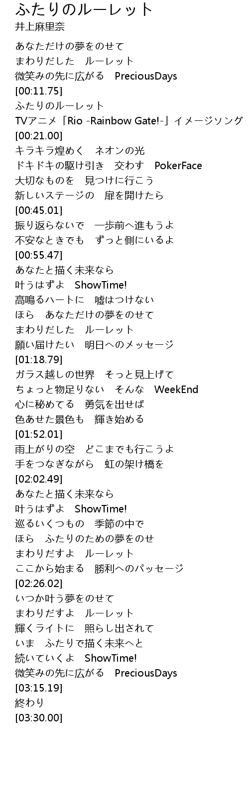 | [00:15.00] | ふたりのルーレット |
