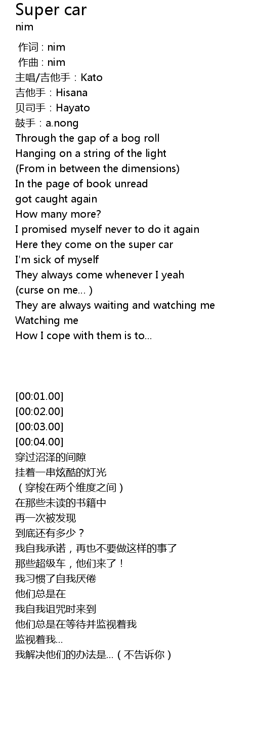 | [01:11.60] | Here they come on the super car |