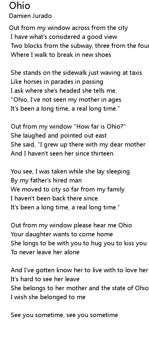 Out from my window please hear me Ohio