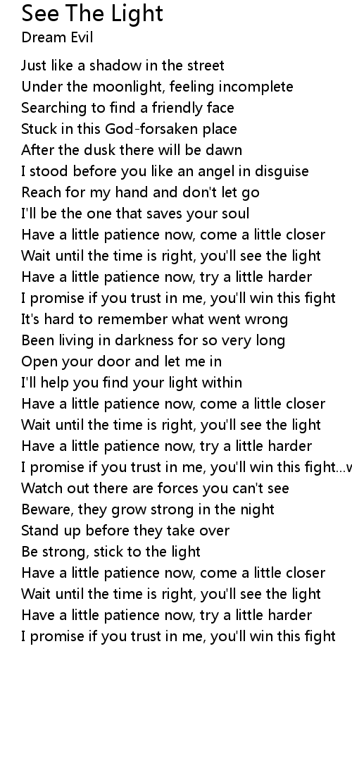 Wait until the time is right, you'll see the light |