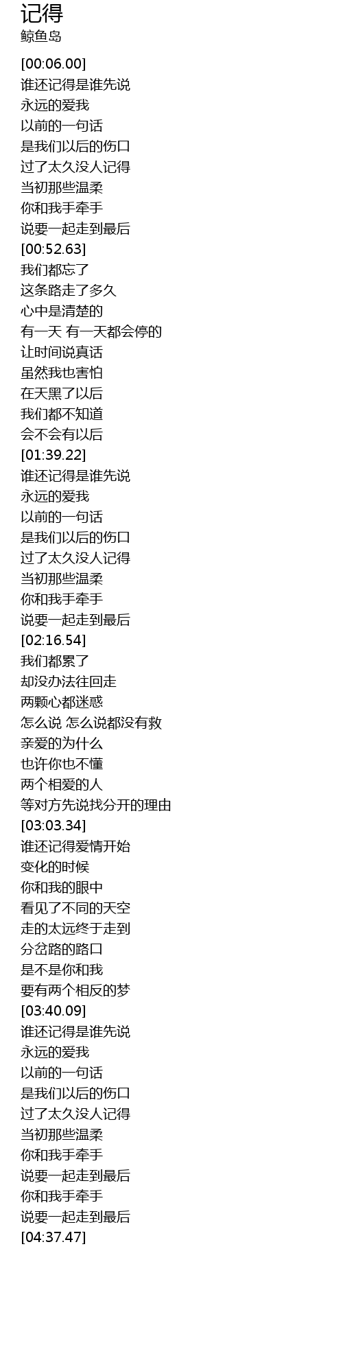 | [04:24.11] | 说要一起走到最后 |
