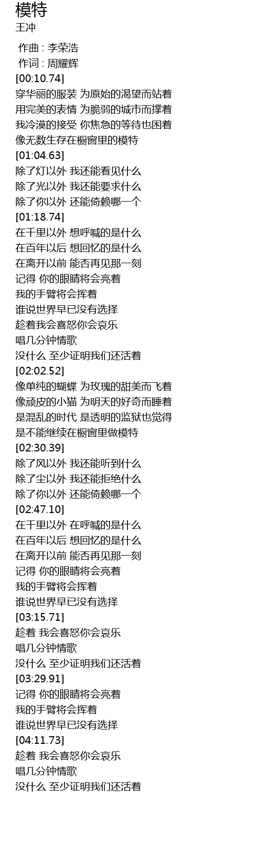 | [00:57.17] | 像无数生存在橱窗里的模特 |