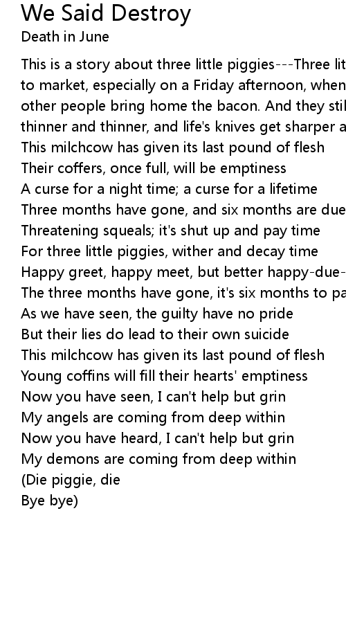 For three little piggies, wither and decay time |