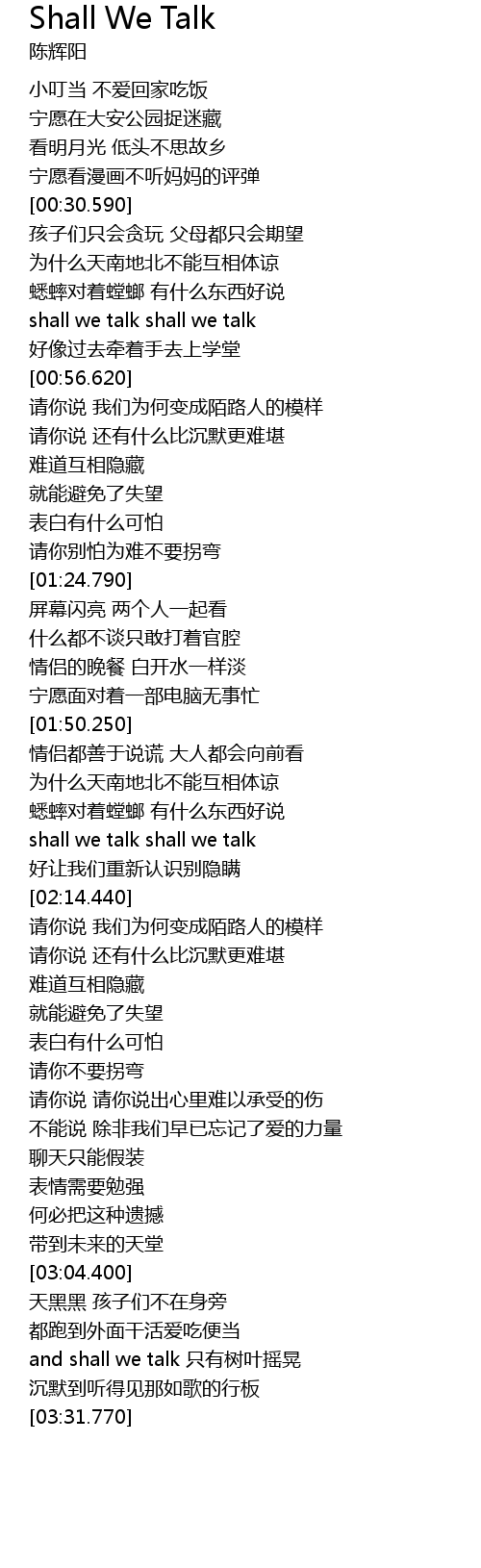 | [03:18.870] | and shall we talk 只有树叶摇晃 |