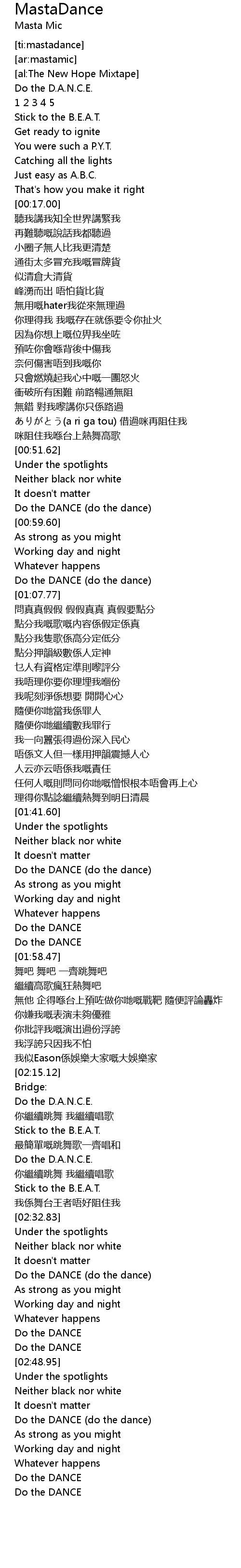 | [02:22.21] | 最簡單嘅跳舞歌一齊唱和 |
