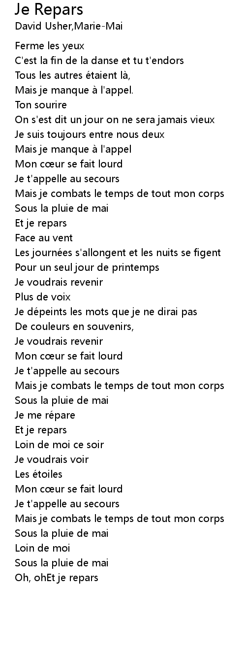 | 歌曲 | Je Repars |