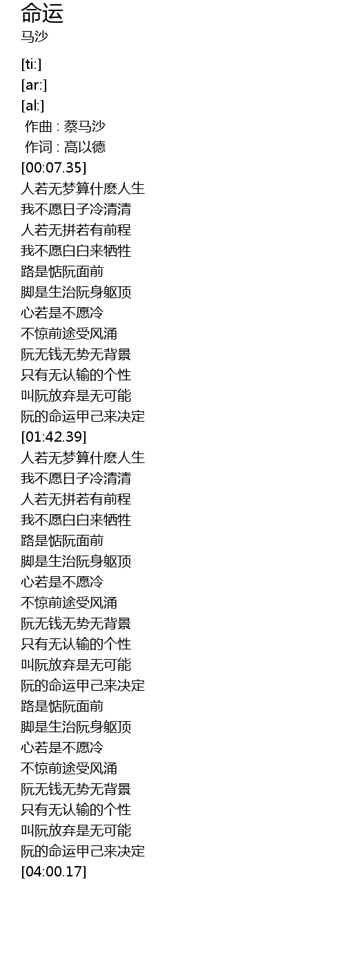 | [01:35.43] | 阮的命运甲己来决定 |