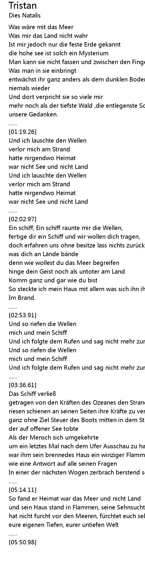 | [01:46.53] | Und ich lauschte den Wellen |
