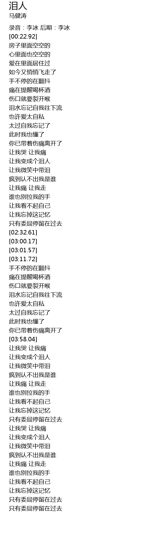 | [00:16.85] | 录音:李冰 后期:李冰 |