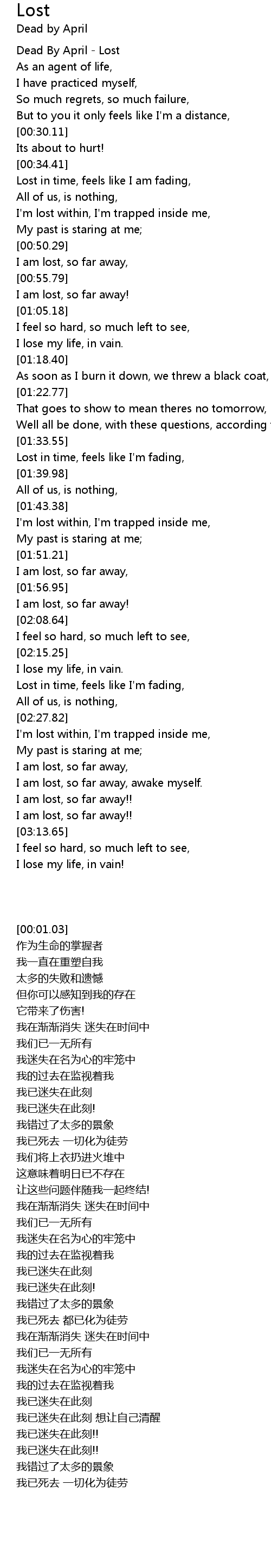 [00:01.03] Dead By April - Lost