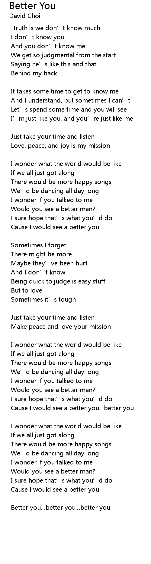 | Cause I would see a better you…better you | |