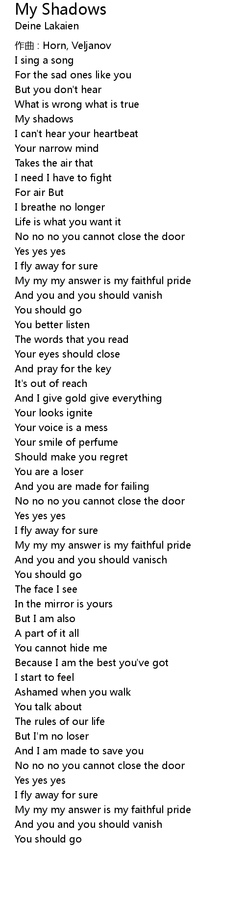 | 歌曲 | My Shadows |