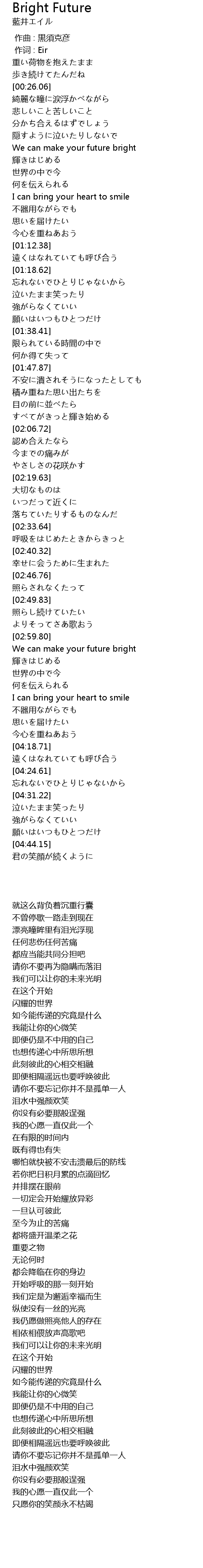 | [00:45.75] | We can make your future bright |