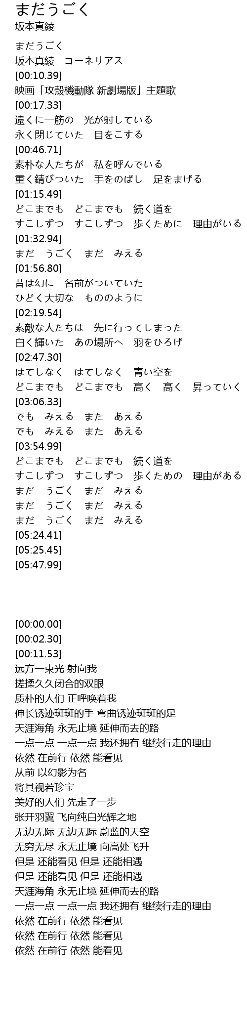 | [00:11.53] | 映画「攻殻機動隊 新劇場版」主題歌 |