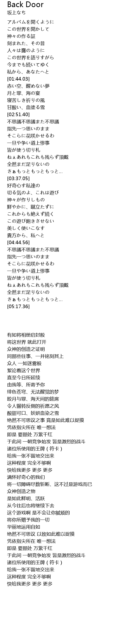 | 歌曲 | Back Door |