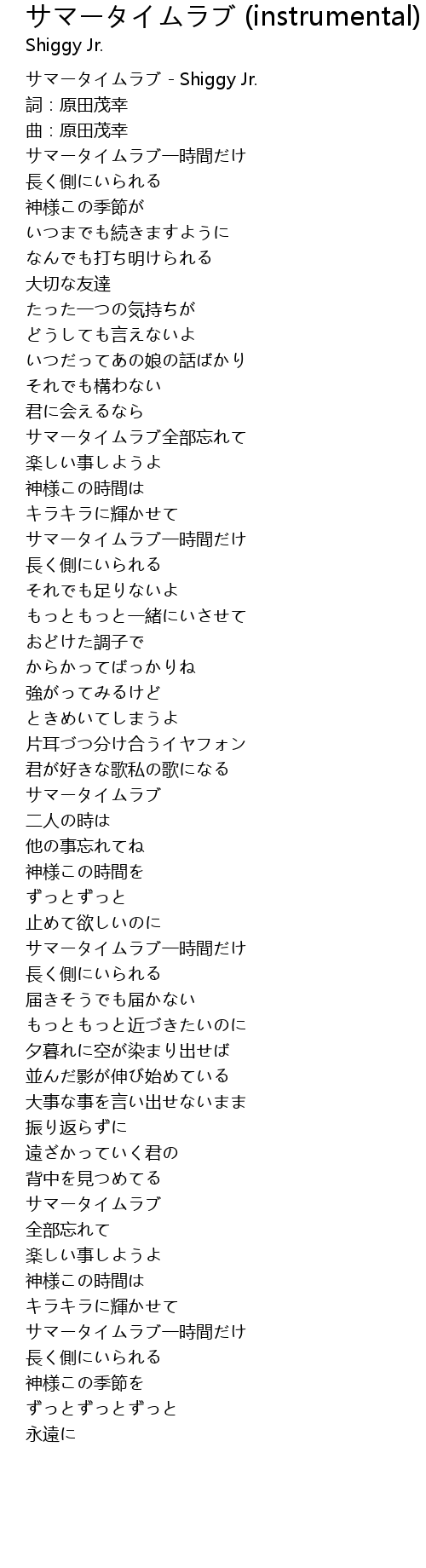 サマータイムラブ - Shiggy Jr. |