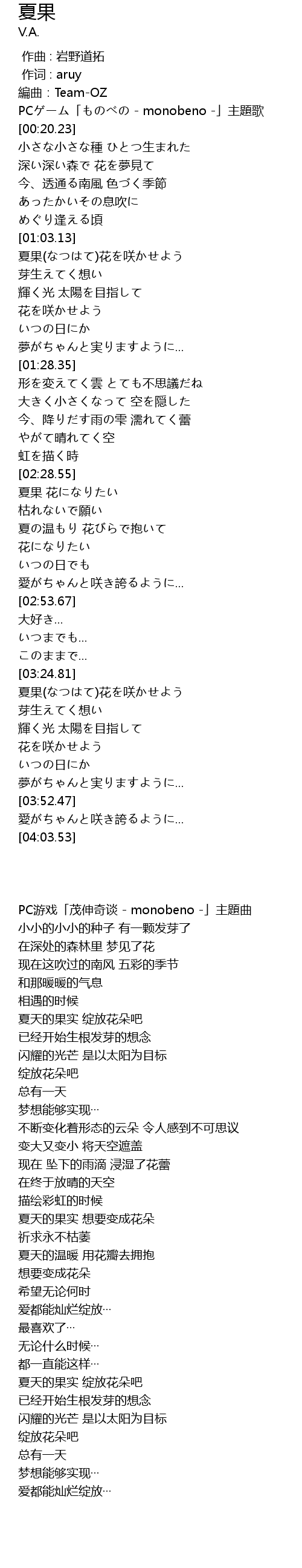 | [03:27.52] | 夏果(なつはて)花を咲かせよう |