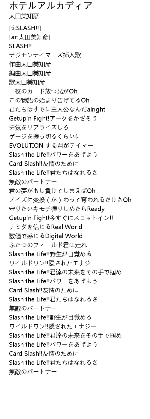| [03:02.789] | Slash the Life!!君達の未来をその手で掴め |