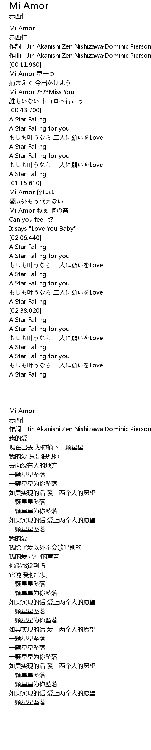 | [01:52.510] | Mi Amor ねぇ 胸の音 |