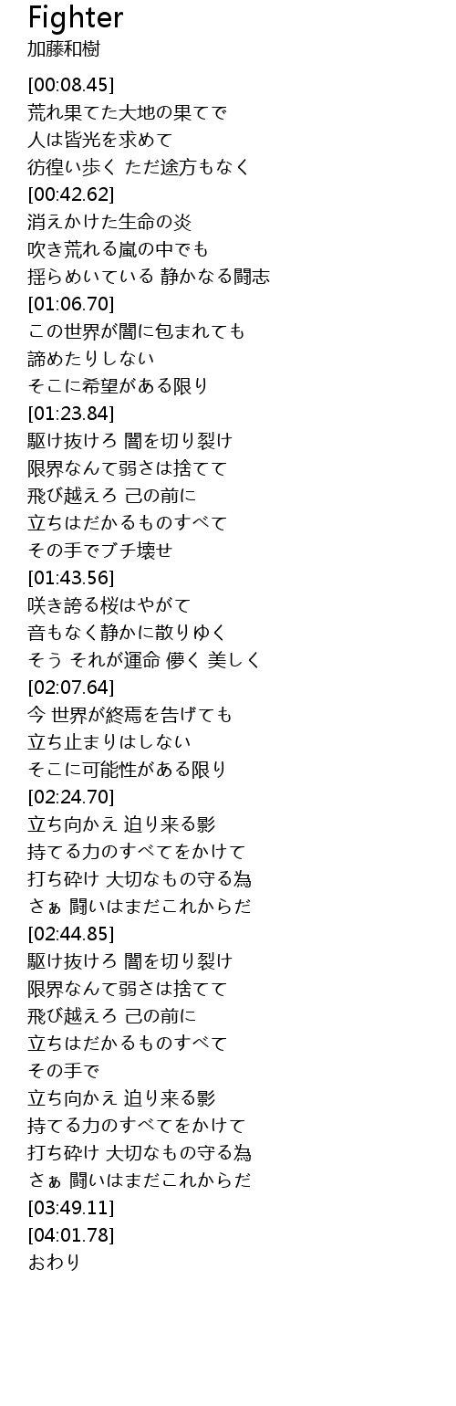 | [03:27.92] | 立ち向かえ 迫り来る影 |