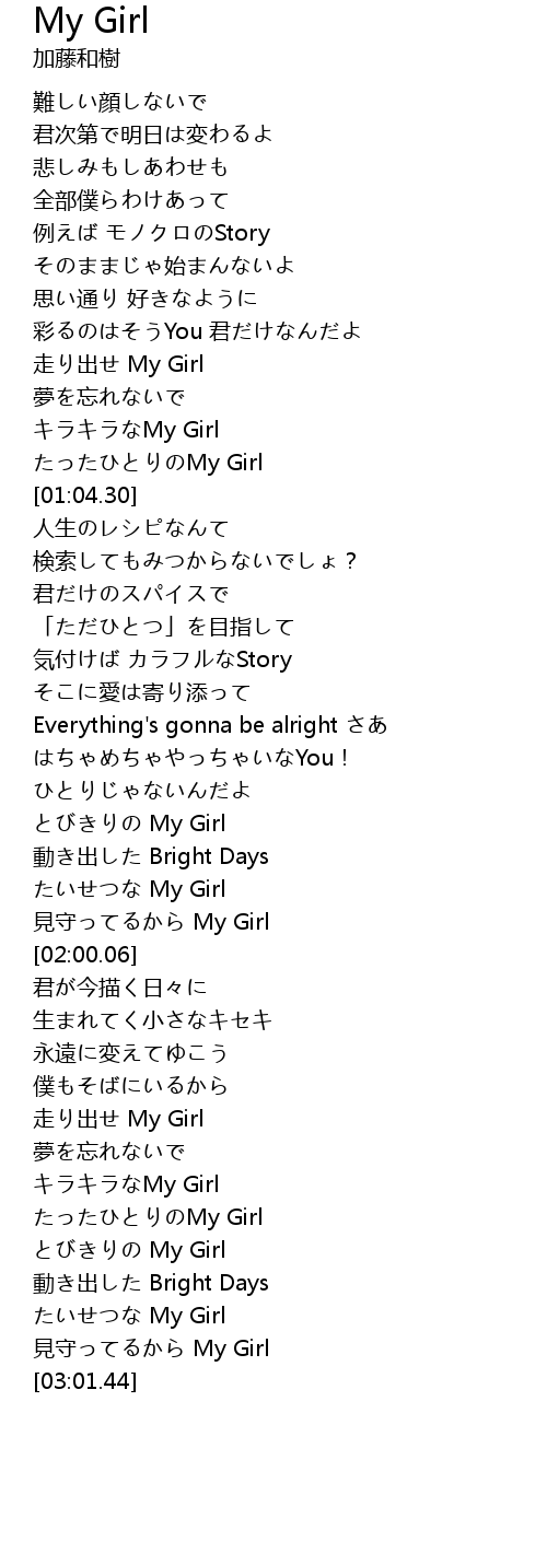 | [01:38.02] | はちゃめちゃやっちゃいなYou! ひとりじゃないんだよ |