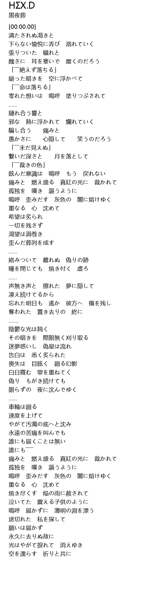 | [07:58.00] | 嗚呼 歪みだす 灰色の 闇に熔けゆく |