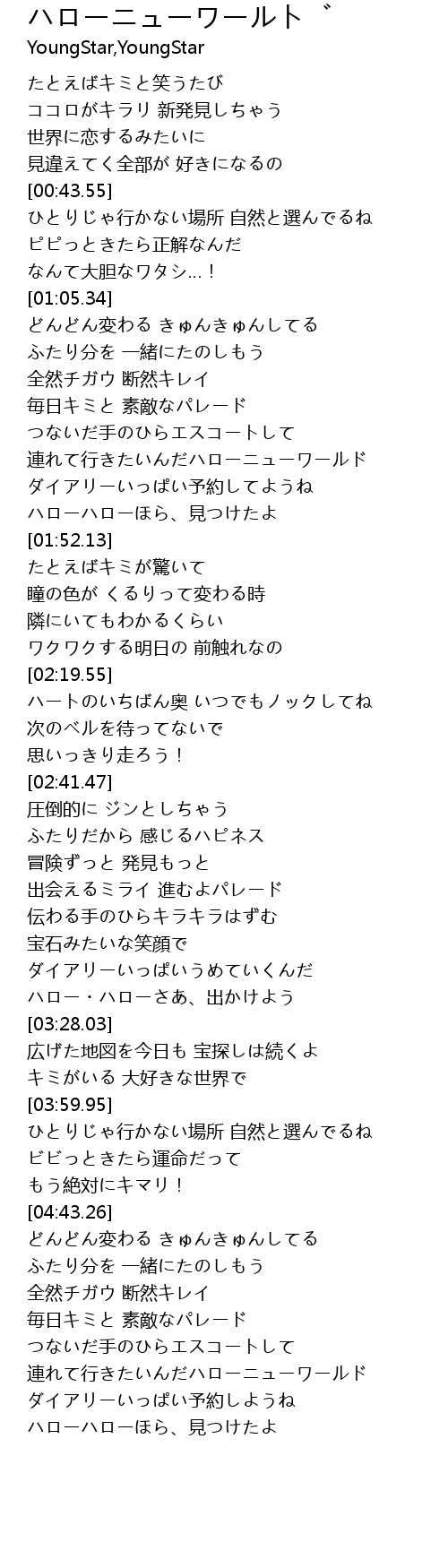 | [01:43.47] | ハローハローほら、見つけたよ |