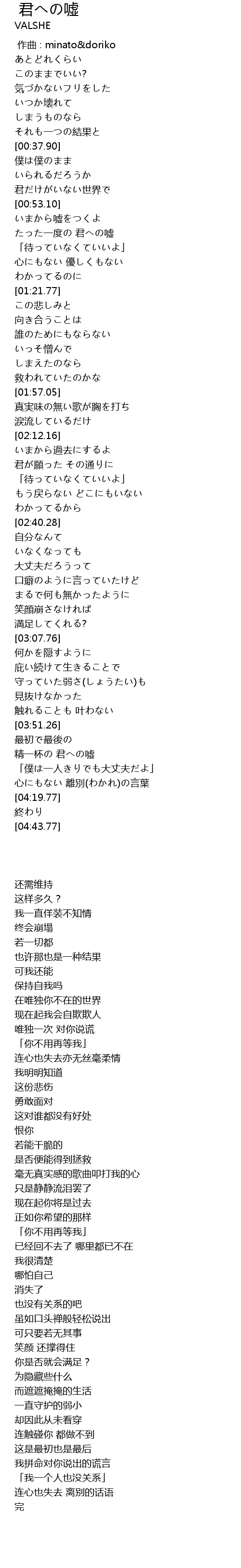 | [03:55.95] | 精一杯の 君への嘘 |