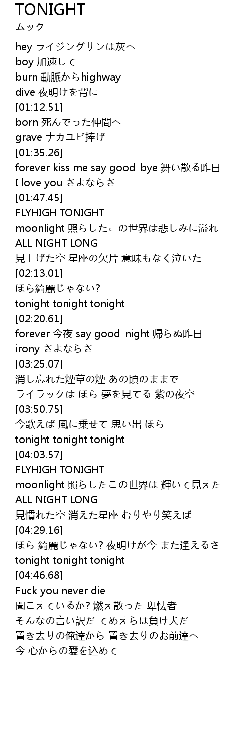 | [03:12.89] | forever 今夜 say good-night 帰らぬ昨日 |