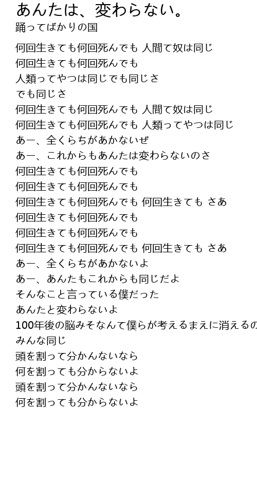 | [00:54.948] | 何回生きても何回死んでも 人間て奴は同じ |