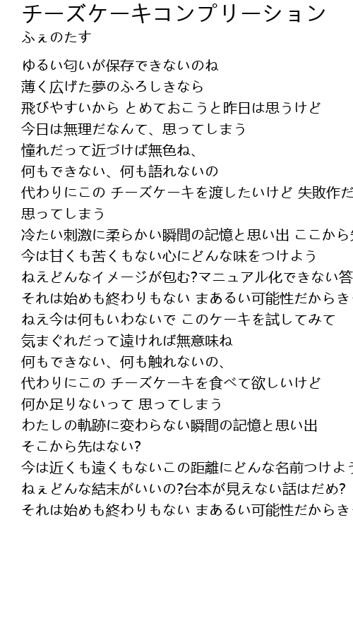 | 代わりにこの チーズケーキを渡したいけど 失敗作だって 思ってしまう | |