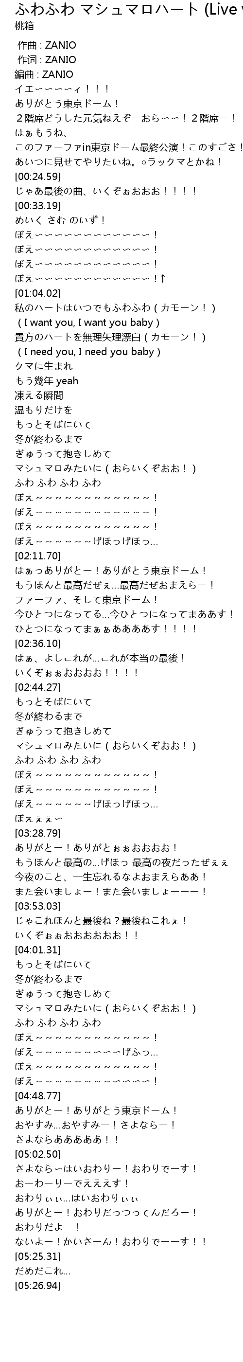 | [02:15.38] | はぁっありがとー!ありがとう東京ドーム! |